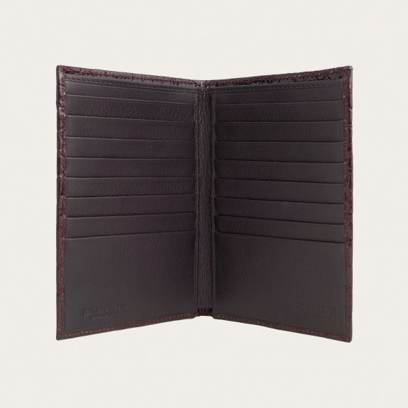 Portafoglio portadocumenti verticale di coccodrillo, bordeaux lucido