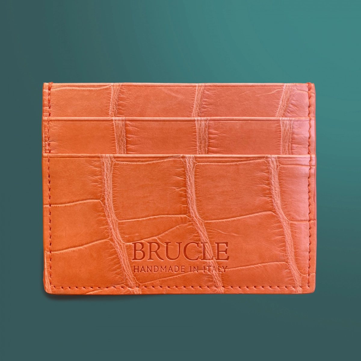 Custodia porta carte di credito arancione in coccodrillo