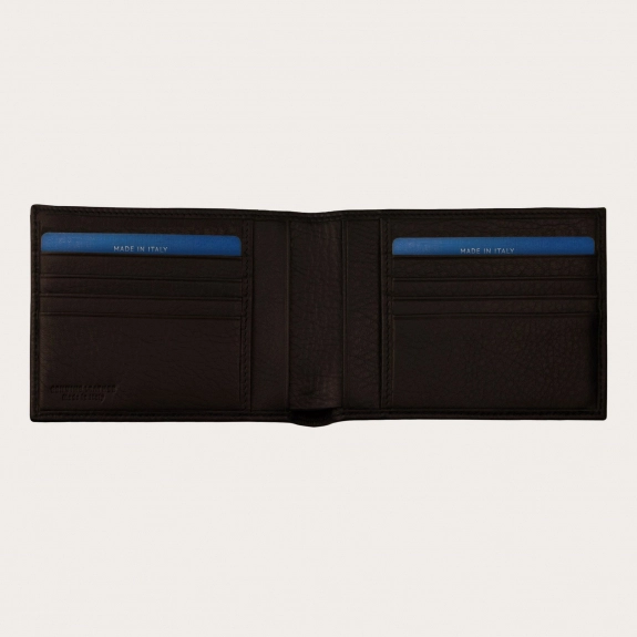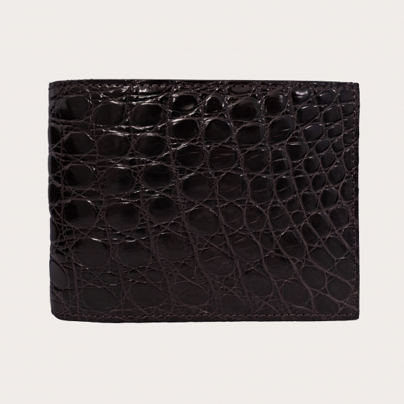 Elegante portafoglio da uomo realizzato in fianco di coccodrillo nel classico colore marrone testa moro, che valorizza la bellezza della vera pelle di coccodrillo.
