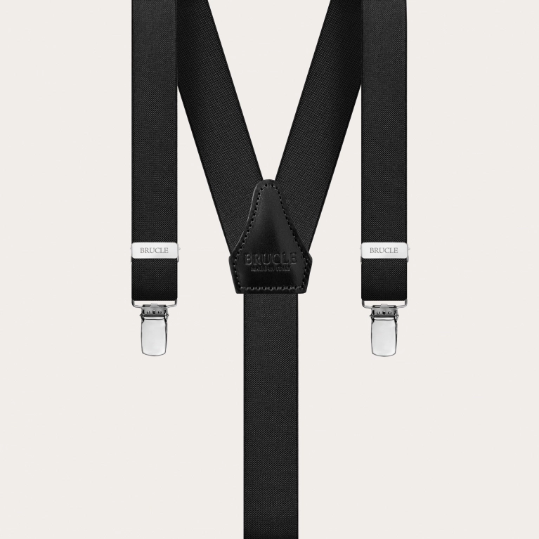 Bretelle bianche cerimonia in lucido raso elastico con fissaggio a lacci, per bottoni. Delle bretelle di grande effetto da cerimonia: sottili e raffinate, ideali per look ricercati ed eleganti. Made in Italy.