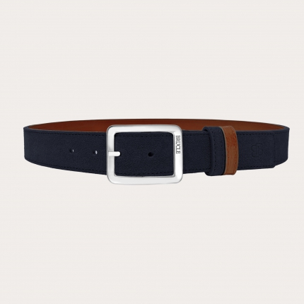 Cintura blu royal in vera pelle scamosciata con micro fori e fibbia in ottone nichel free, perfetta per uno stile casual e ricercato.