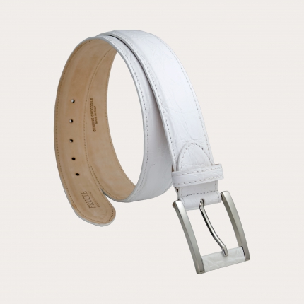 In questa raffinata cintura in schiena di coccodrillo, l'altezza che determina lo stile casual si unisce all'eleganza della vera pelle di coccodrillo, per un accessorio unico e irripetibile.
