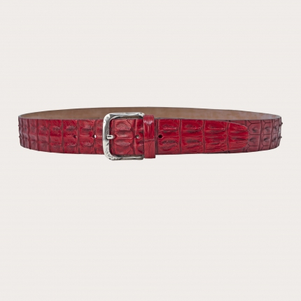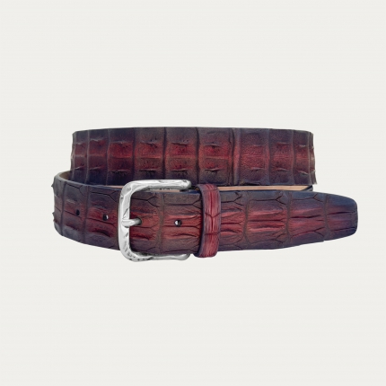 Cintura bordeaux in cuoio con fibbia passante e punta in metallo