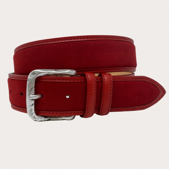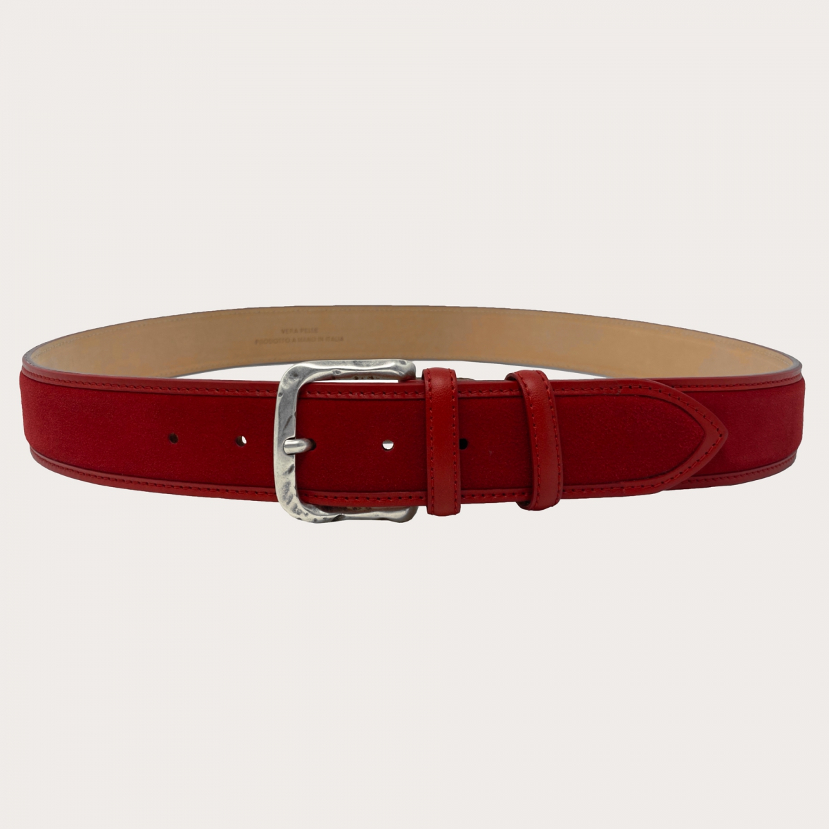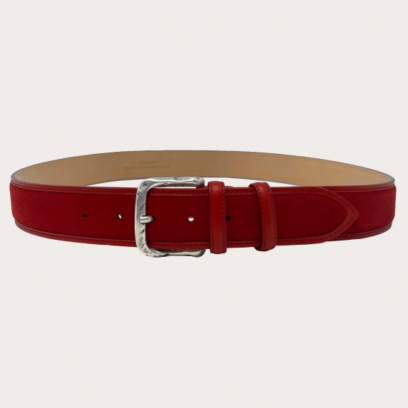 Scopri la vibrante eleganza della nostra cintura rossa, realizzata in morbida pelle bovina e arricchita da una distintiva stampa alce. Perfetta per aggiungere un tocco di colore agli outfit quotidiani, questa cintura sportiva ma elegante è l'ideale per abbinamenti con jeans o per completare look più originali.