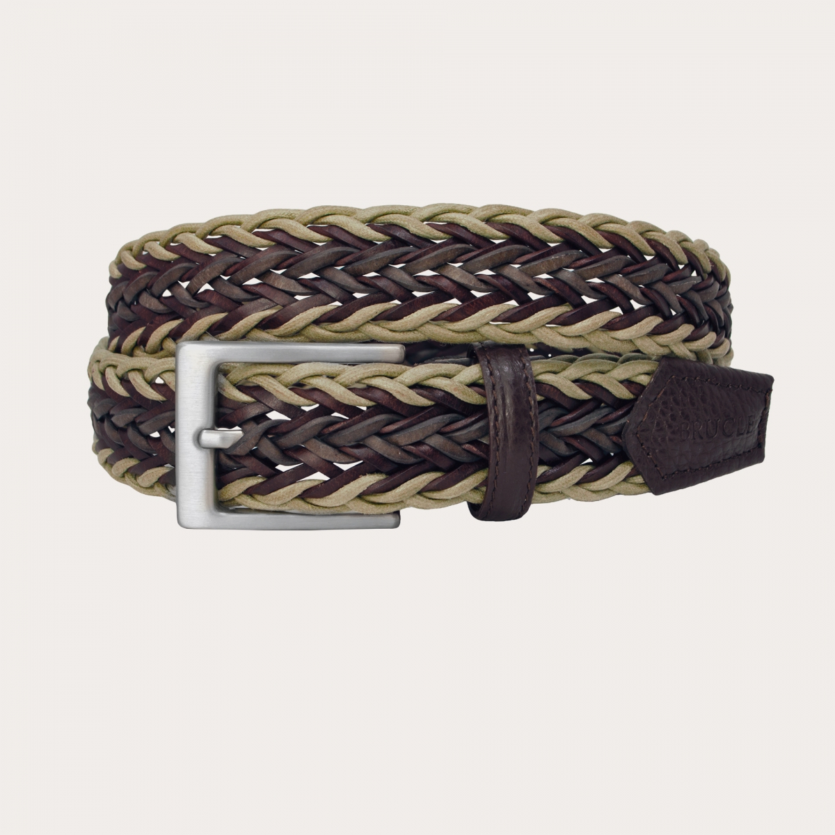 Cintura intrecciata elastica marrone in cuoio rigenerato