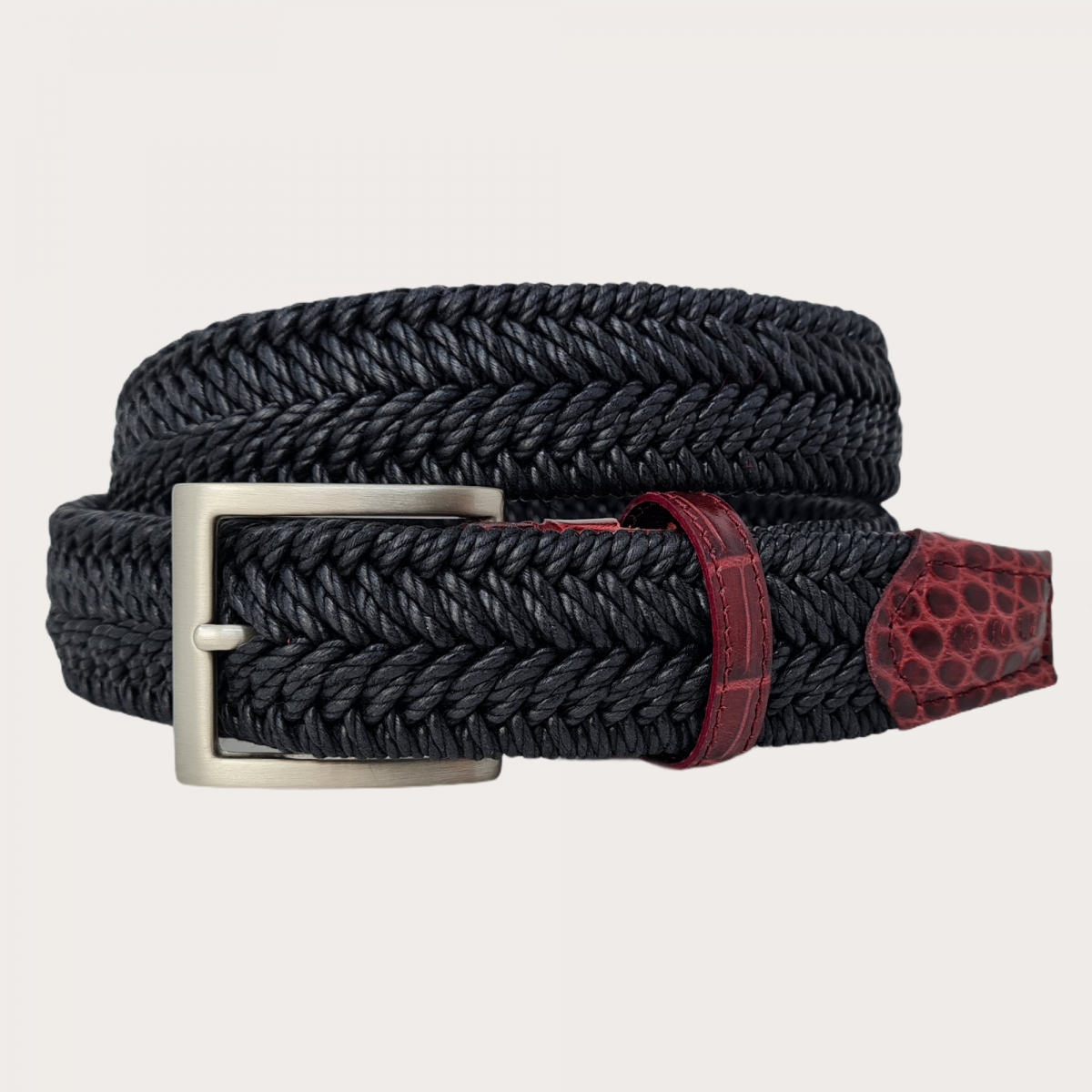 Cintura elastica intrecciata nera con fibbia rutenio nichel free