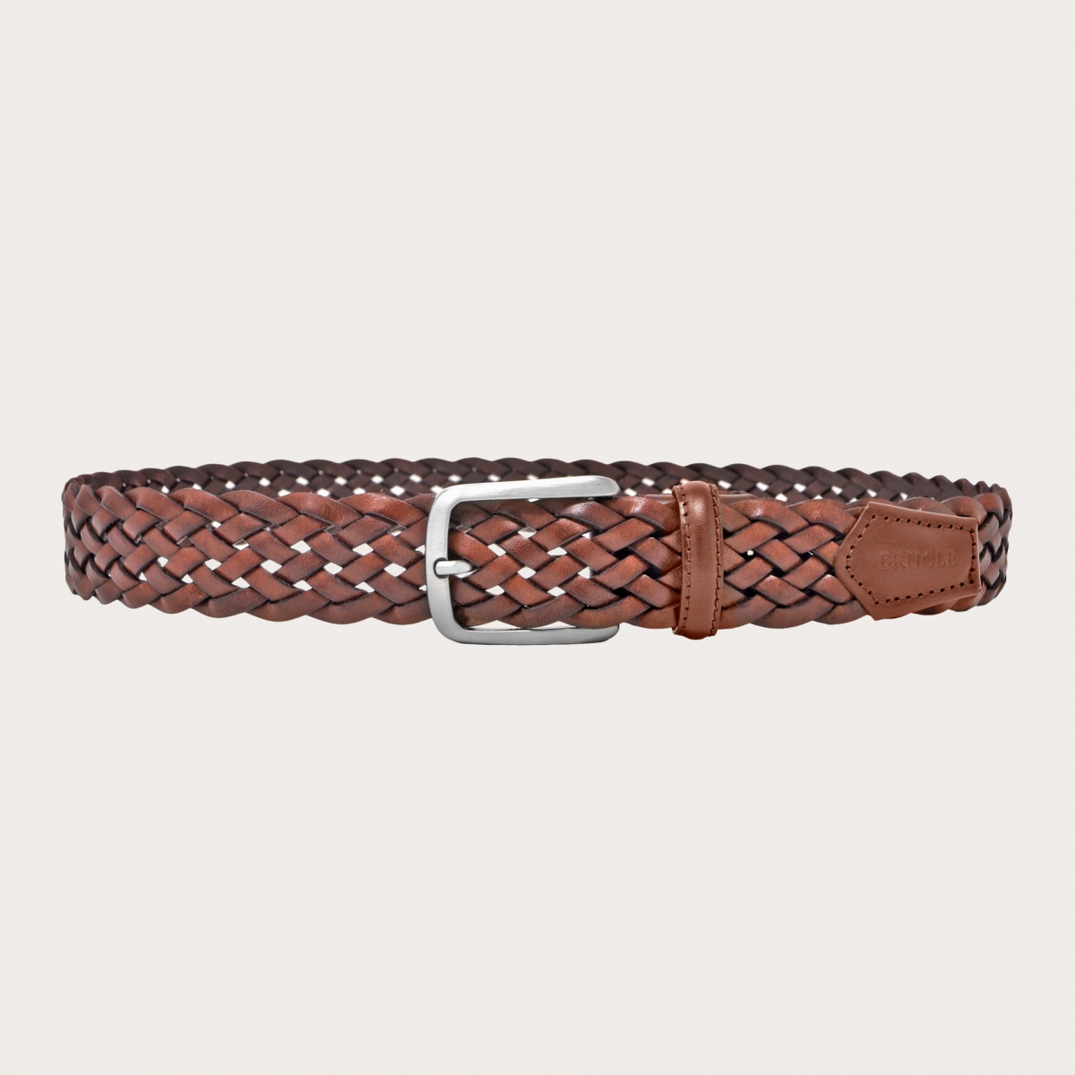 Cintura intrecciata elastica marrone in cuoio rigenerato