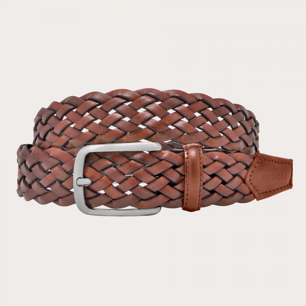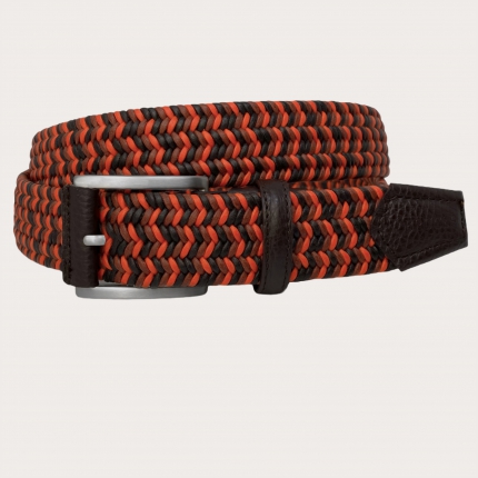 Cintura intrecciata elastica color cognac in cuoio rigenerato