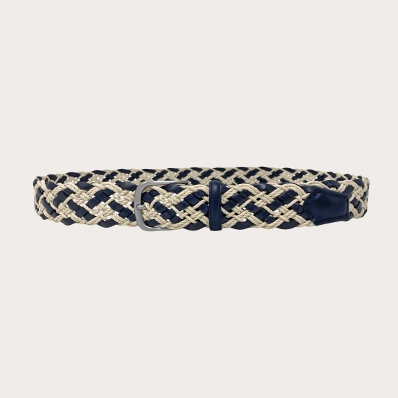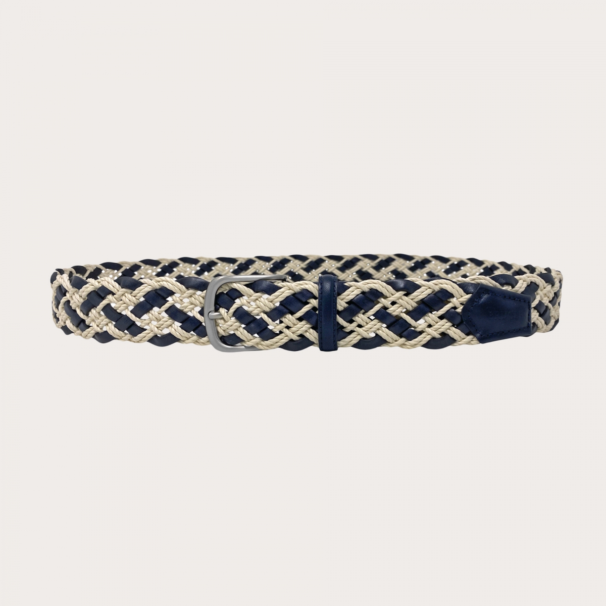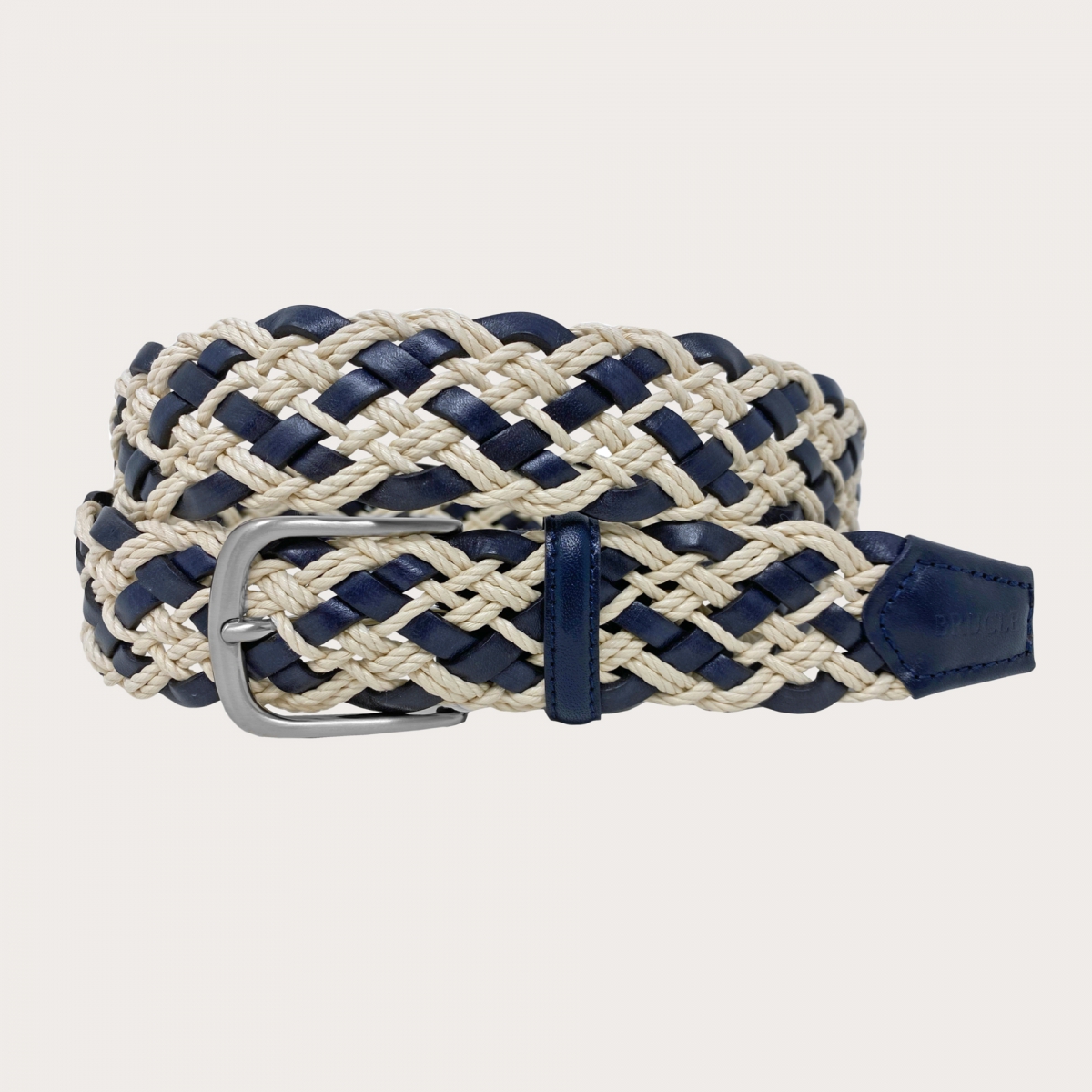 Cintura intrecciata in cuoio e cotone bianca e azzurra
