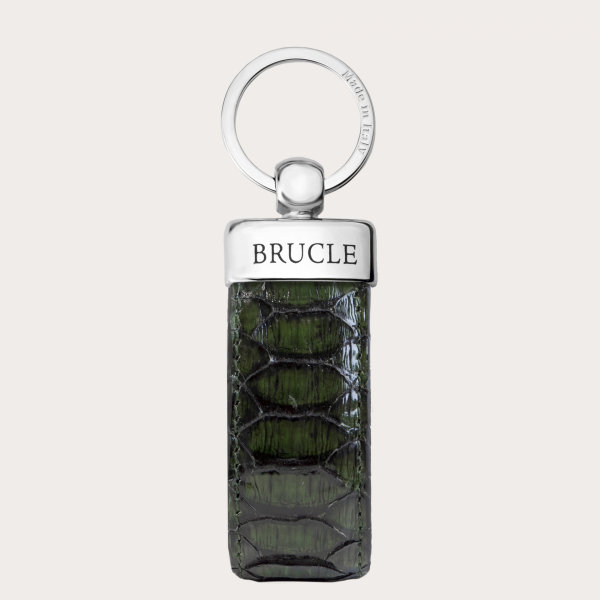 Il portachiavi in pitone verde BRUCLE è un accessorio unico e raffinato, realizzato con materiali di alta qualità e cura artigianale. Il corpo del portachiavi è in pelle di pitone, un materiale pregiato e resistente, che conferisce al prodotto un aspetto elegante e sofisticato. Personalizzabile con incisioni che lo rendono un regalo perfetto per ogni occasione. È possibile incidere il nome, le iniziali o un messaggio speciale, per rendere il portachiavi ancora più unico e speciale.