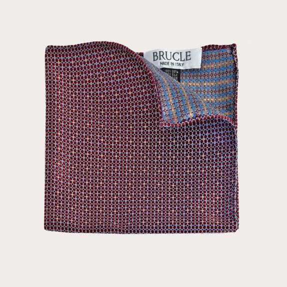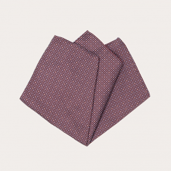 Fazzoletto da taschino bordeaux in raso di seta, un accessorio elegante e raffinato, in grado di donare un tocco di colore al tuo outfit. Il colore bordeaux rende questo fazzoletto da taschino facilmente abbinabile con tutti i toni del blu, del nero, del grigio. Interamente fatto a mano in Italia con raso di seta tessuto a Como.