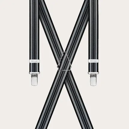 Bretelle unisex da bambino e adolescente a righe, dotate di dorsale regolabile in metallo.