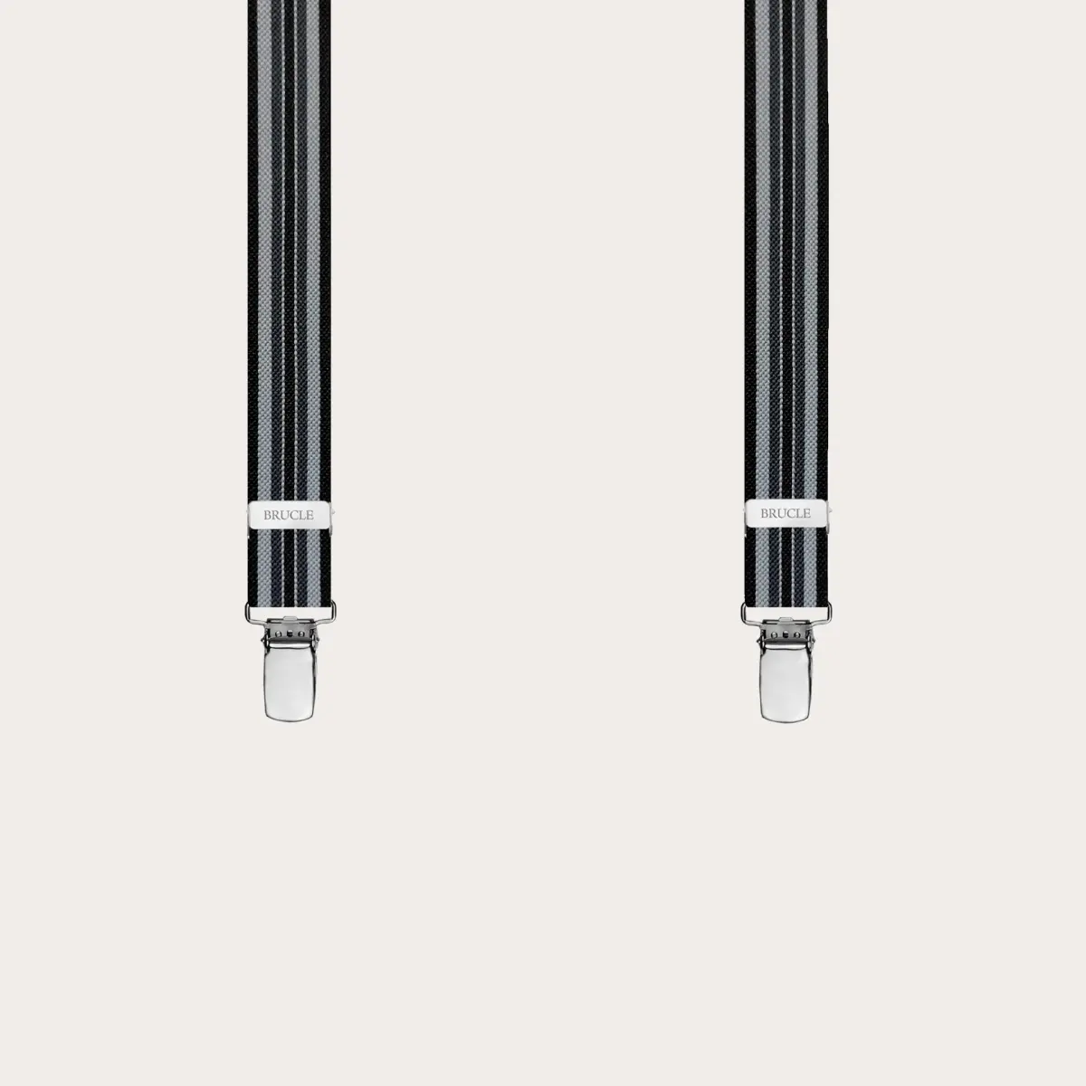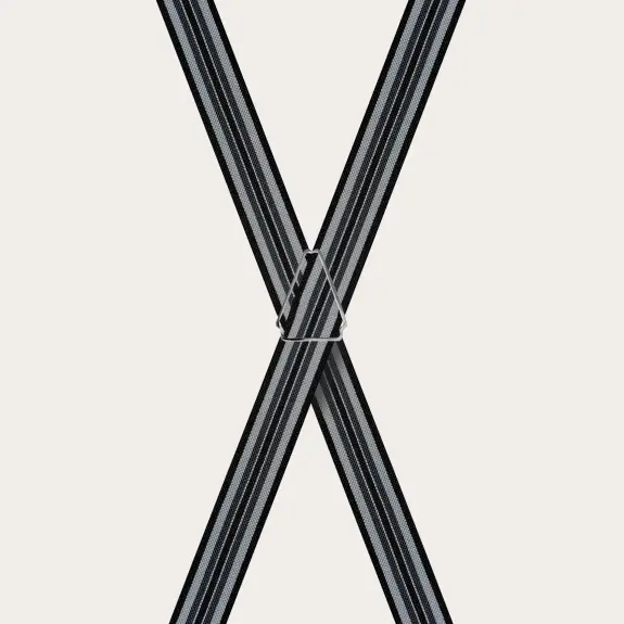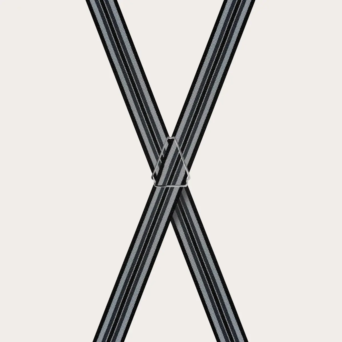 Bretelle sottili a X per bambini e adolescenti, righe nere e grigie