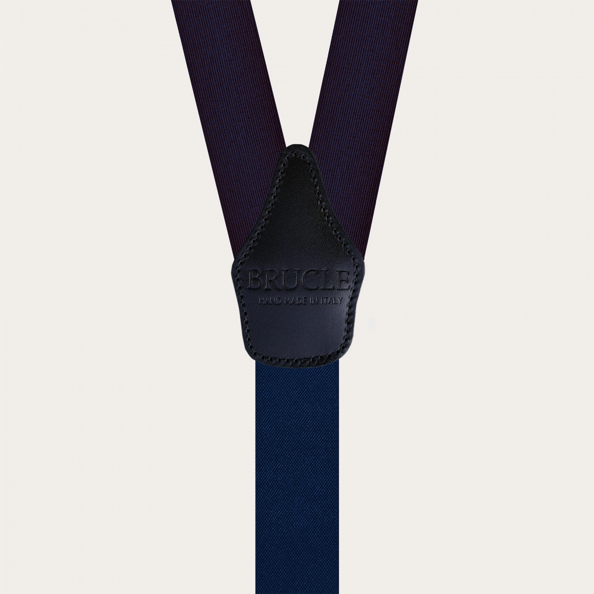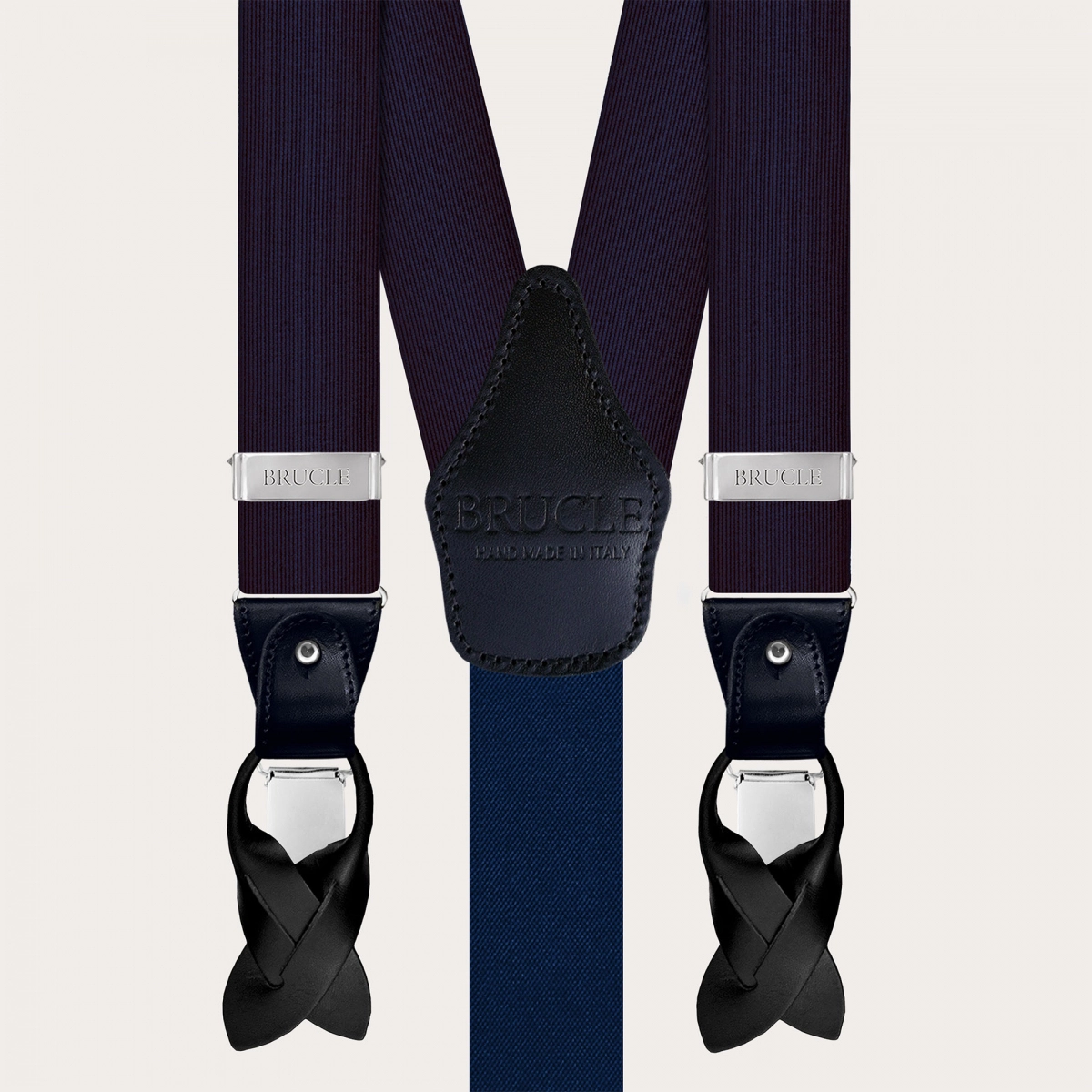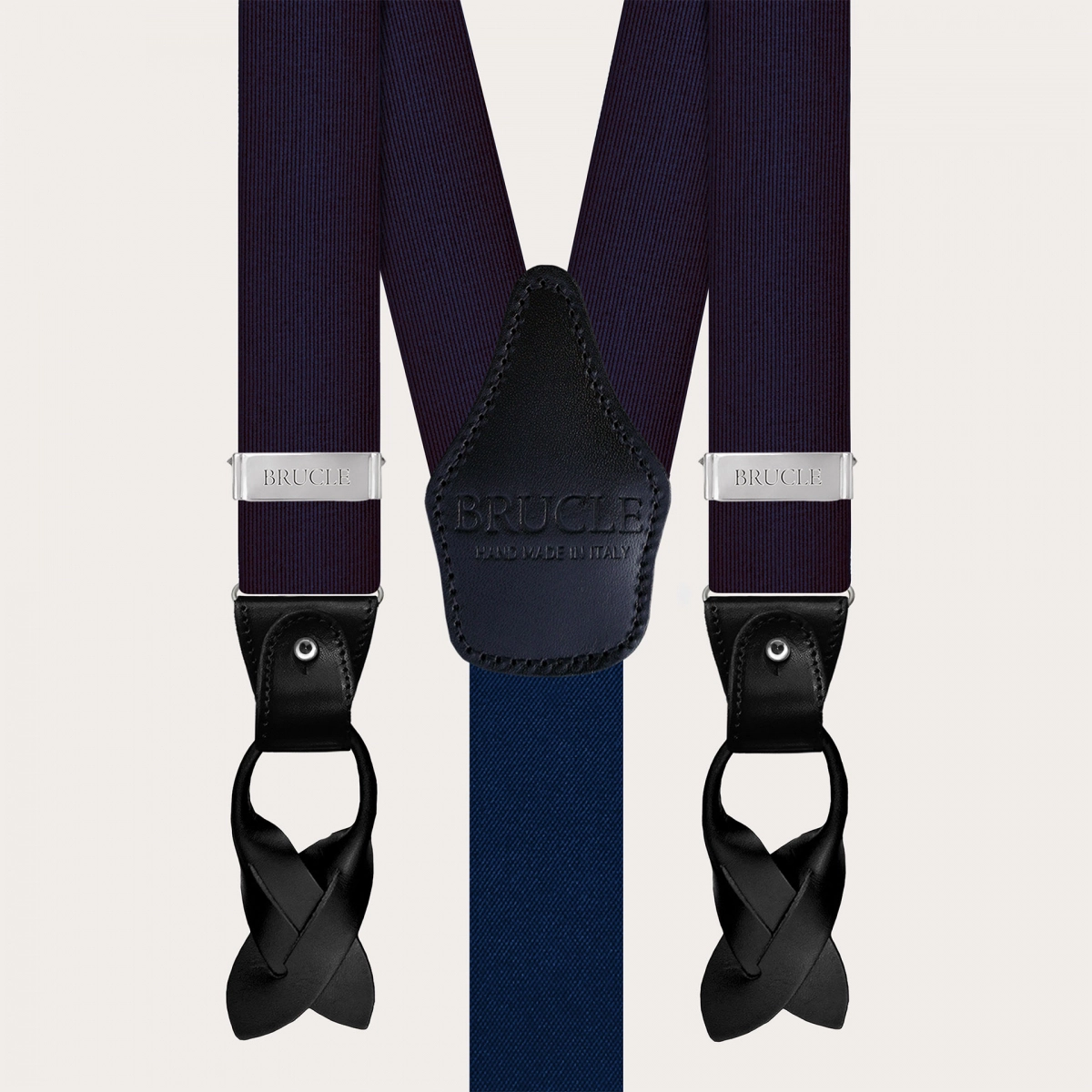 Le bretelle uomo in seta blu sono pratiche e versatili: possono infatti essere indossate con bottoni o con clip, adattandosi perfettamente al tuo stile e alle diverse occasioni.