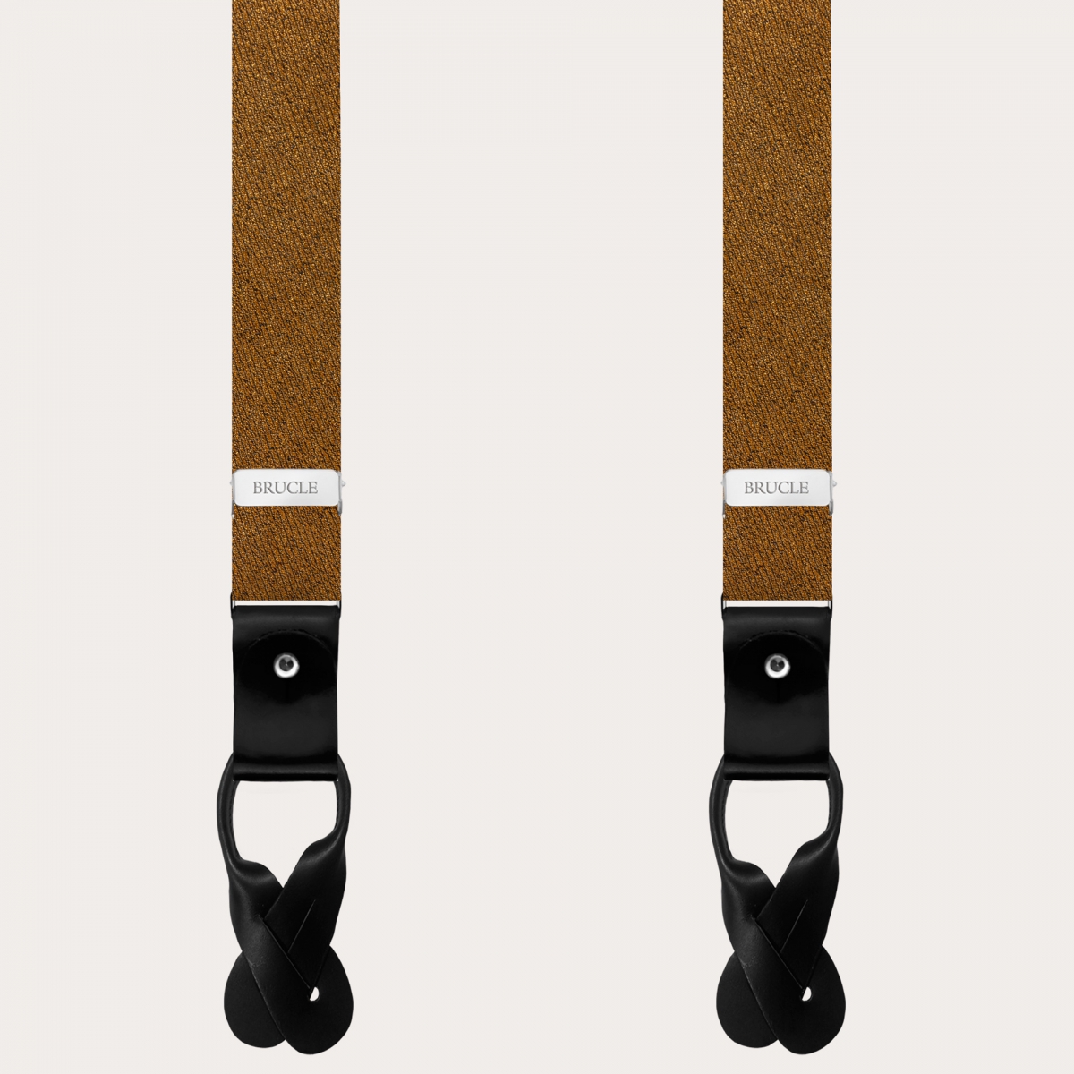 Bretelle uomo in seta color champagne con parti metalliche oro