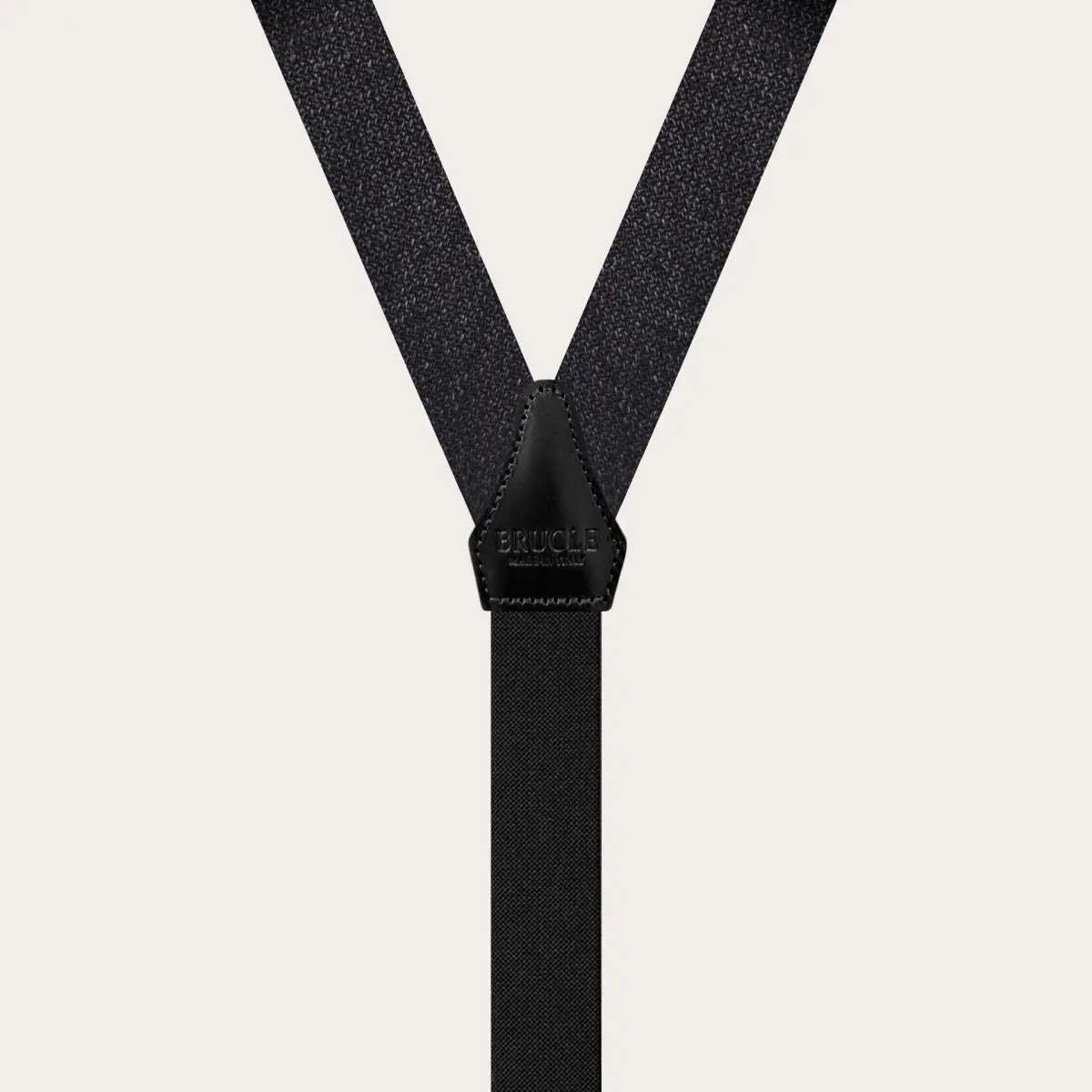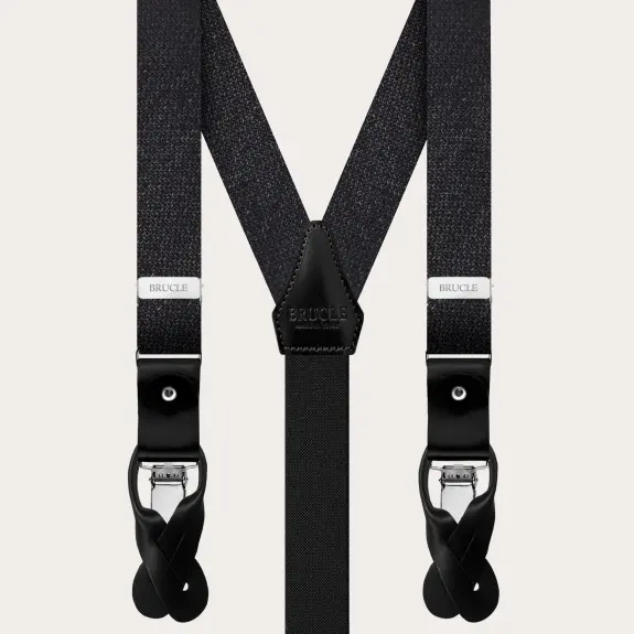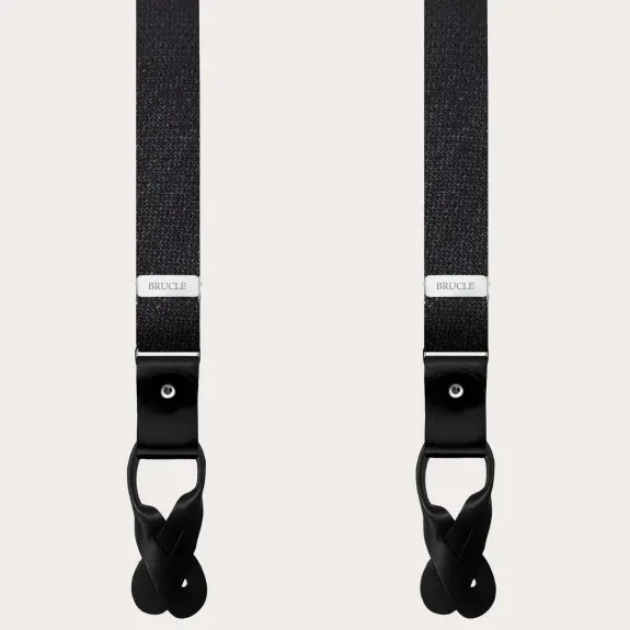 Bretelle in seta per bottoni blu con fantasia macro paisley e pelle colorata a mano della nuova collezione.