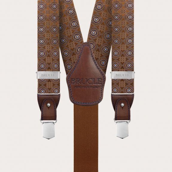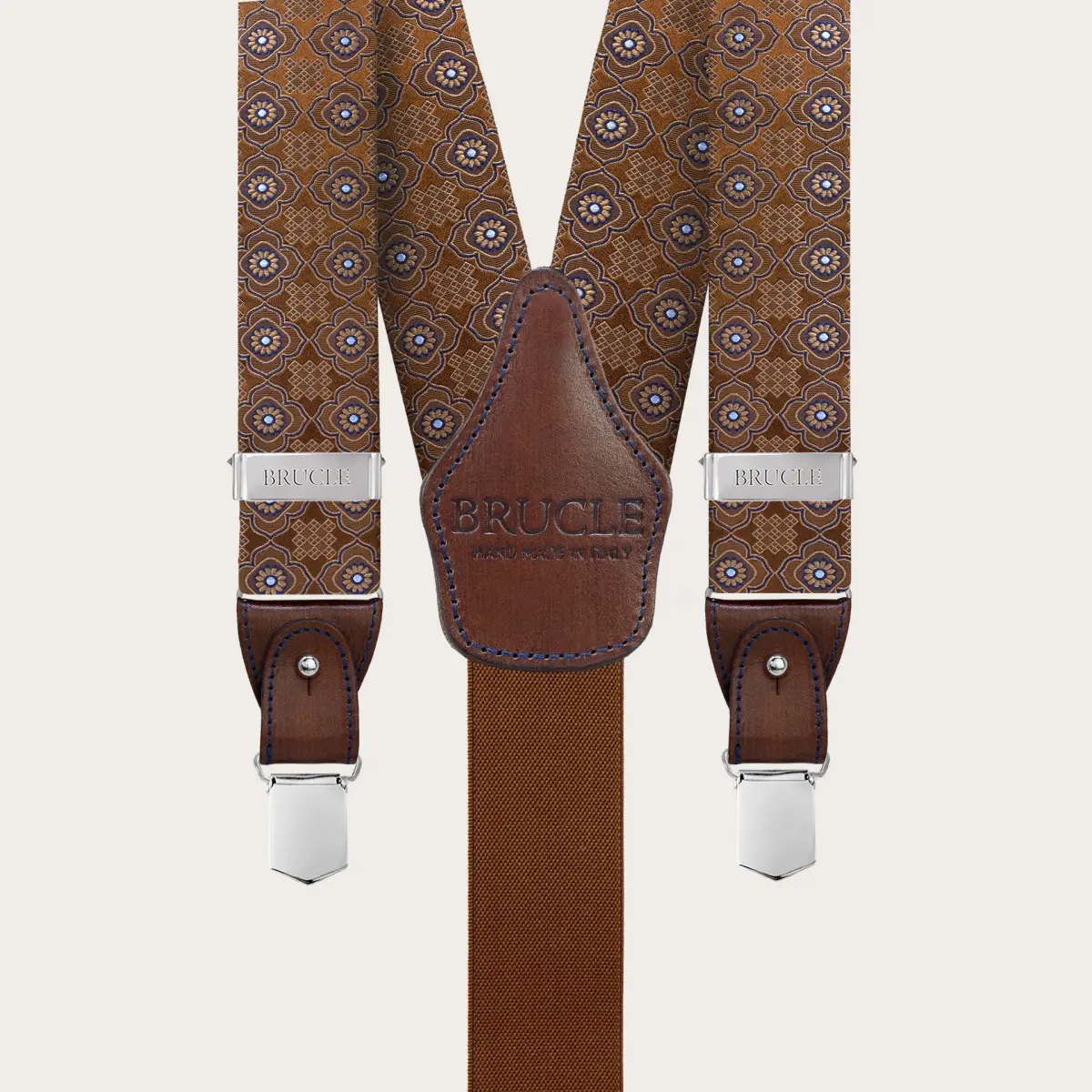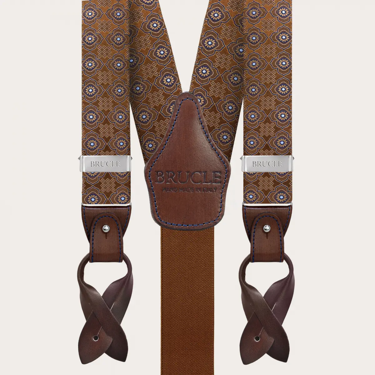Bretelle uomo marroni a fiori in seta per bottoni o clip
