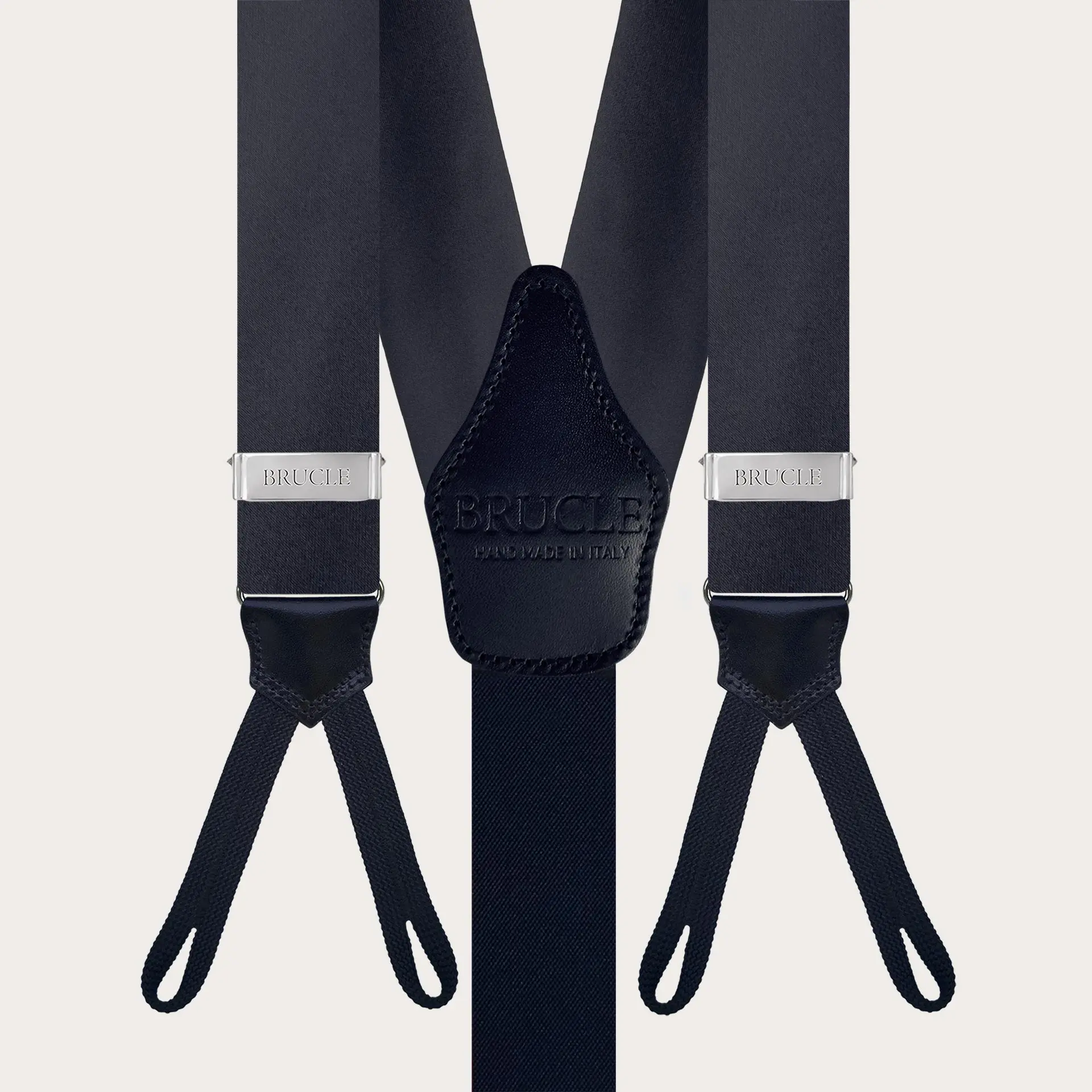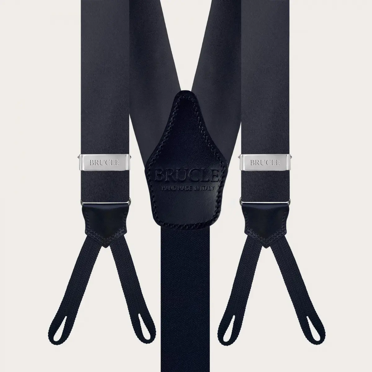 Bretelle in raso di seta blu navy con asole per bottoni Bretelle in raso di seta blu navy con asole per bottoni Bretelle in raso di seta blu navy con asole per bottoni