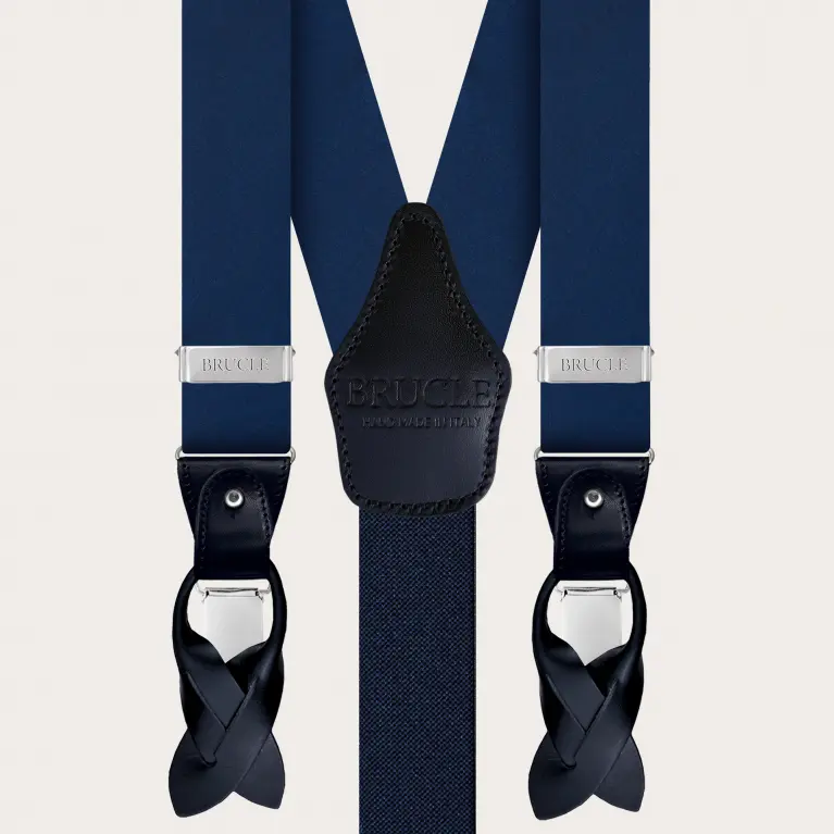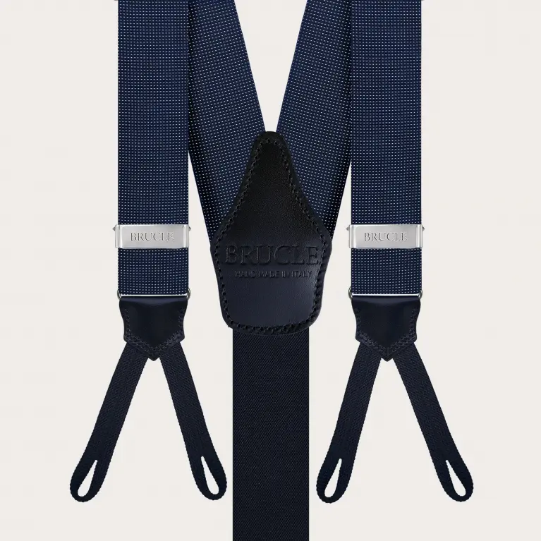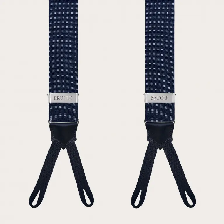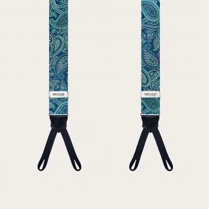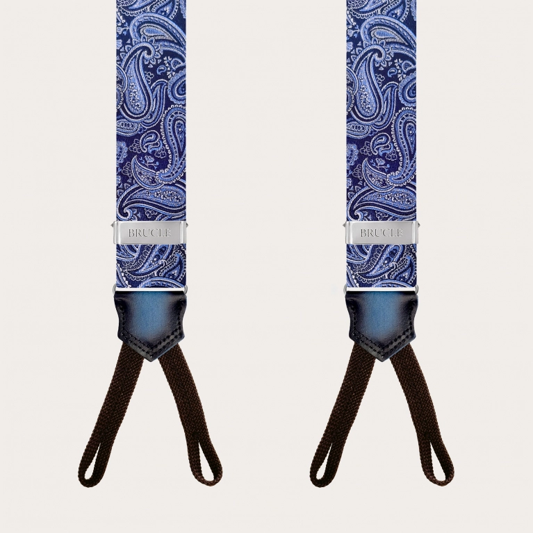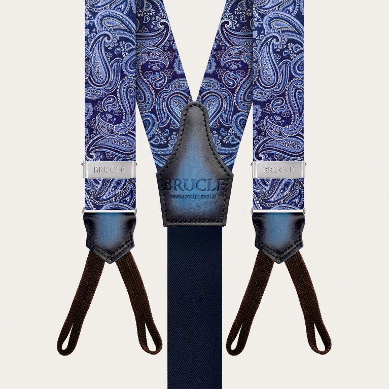 Bretelle uomo in seta con asole, paisley azzurro e blu