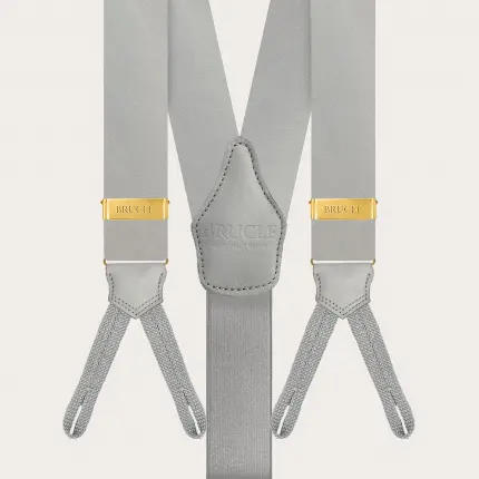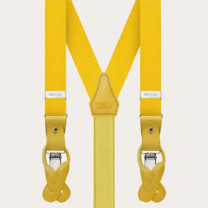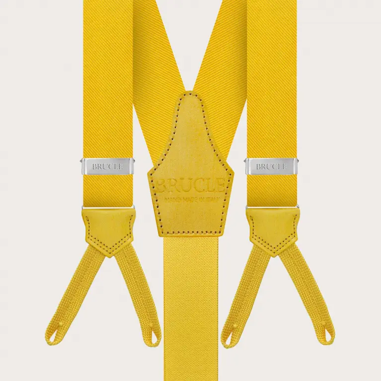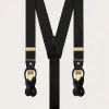 Fatte a mano in Italia con i migliori filati, queste bretelle nere in seta sono di elevata qualità e curate fin nei minimi dettagli, dalle parti in vera pelle alla possibilità di personalizzarle con incisioni o cambiando il colore delle clip, delle parti in pelle e degli attacchi.