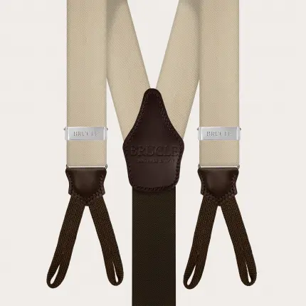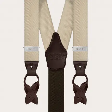 Le aste anteriori sono in seta non elastica e regolabili, mentre la gamba posteriore è in elastico per garantire una perfetta vestibilità.