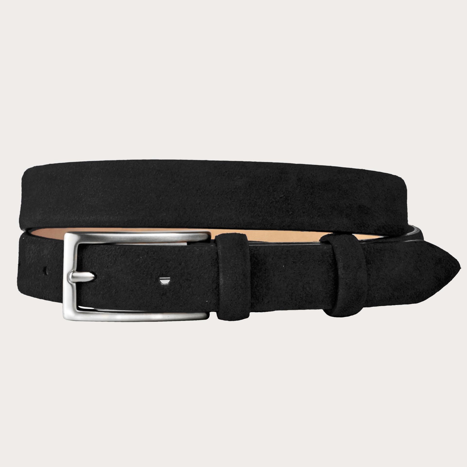 Cintura da uomo nera in vera pelle bovina con fibbia in ottone pieno satinato nichel free.