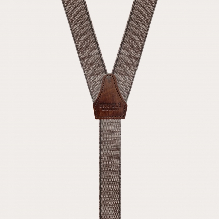 Bretelle sottili marroni in raso, unisex. Bretelle versatili, adatte a cerimonie o a look trendy. Fatte a mano in Italia con i migliori materiali, sono unisex, per look femminile o maschile.