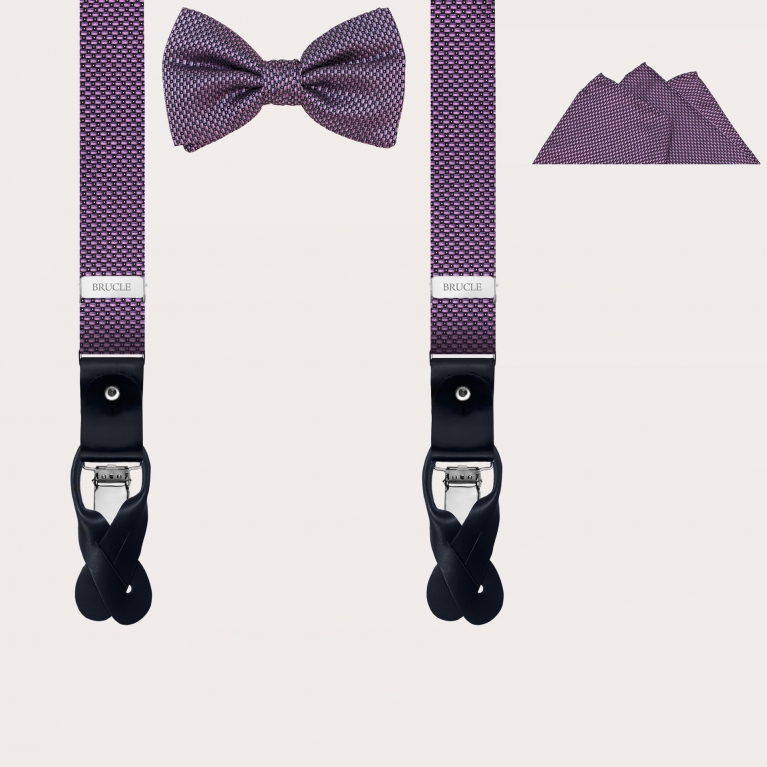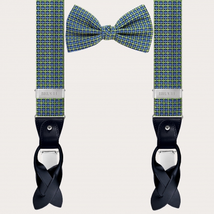 Bretelle nere in raso di seta doppio uso bottoni o clip oro