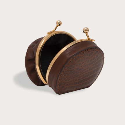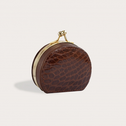Originale Portafoglio compatto fuchsia in fianco di coccodrillo, fatto a mano in Italia. Un colore unico che esalta la texture della pelle di coccodrillo.